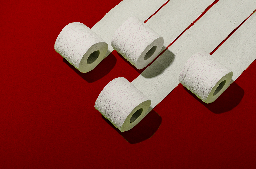 Rouleaux de papier toilette sur fond rouge